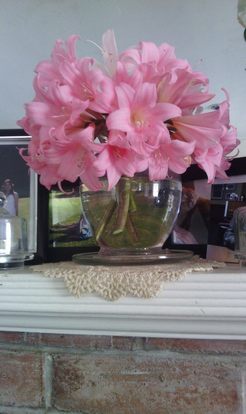 今年七.八月時,後院子自己長的Naked Lilies. 今年也試著把它剪裁到瓶子裡裝飾,但是如果家裡沒開窗門,味道很濃呢.