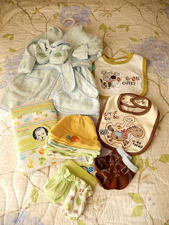 呵呵,不要看服飾的顏色款式猜 baby 的性別啊. 我只是挑比較中性和喜歡的顏色而已.