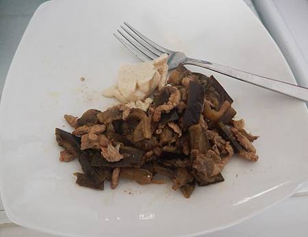 有時中餐吃不飽,我也會在飯後30~40分鐘左右,再加吃了一些剩菜 (如果有剩菜的話). 像圖片裡的是一碗份量的豬肉絲炒矮瓜,加1/3 杯份量的水煮豆腐.