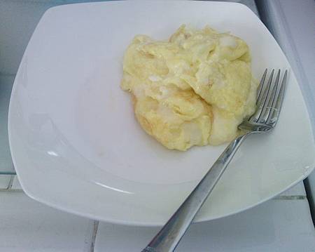 炒蛋吃悶了,我會改成用半杯牛奶蒸水蛋. 蛋的份量也跟上面差不多. 其實也挺好吃的,同時也吃得到牛奶,又不會讓我反感.
