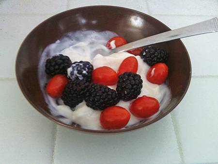 有時因為想多吃奶類,我在水果裡加了 plain yogurt. 但是我向來都不喜歡plain yogurt,要嘛覺得它口味太酸,要嘛總是吃到它隨著牛畜而來的糞土味. ~ 不知能怎麼改善??