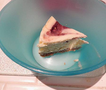 很妙的是,中間我有在中餐和晚餐之間,有試吃糖尿病大忌的甜點 ~ cheese cake, 血糖卻仍然在 120 mg 以下. 但是,我吃的份量當然比平常少,大約是平常會吃的1/2而已. 剛開始,甚至只吃到平常量的1/4. 就是比圖片裡的還要小一半的份量.