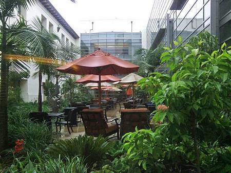 (醫院餐廳的室外廳. 偶爾出去曬曬太陽,出去外面吃,心情會好很多.)