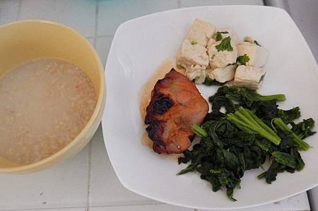 (平常在家吃的午餐. 以後可能要再多煮點肉,因為一餐煮完,都不夠第二天吃. 麥片是有時候可以吃,有時候指數漂高得很,現在都不大敢碰).