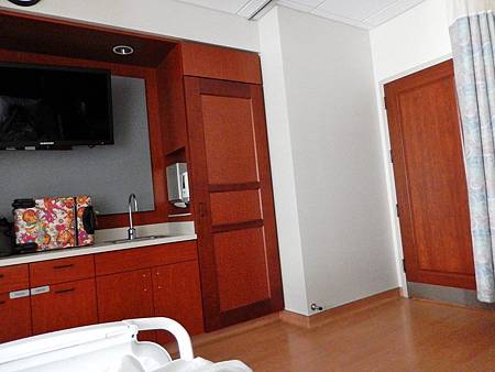 沒想到,我們分配到的,是當天最後一間單人房呢. 接下來的產婦,都要入住雙人房了. 所以儘管我們分配到的單人房面對的是醫院的內庭,沒有街景可以欣賞,也不會有太多意見了.