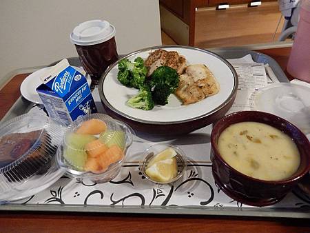 醫院鼓勵母嬰同室. 住院期間的三餐吃喝都有醫院的餐廳照顧. 醫院特別說明病人可以要求護士提供熱飲,但護士仍常常忘記而倒一大杯加了冰的水給你 : D.