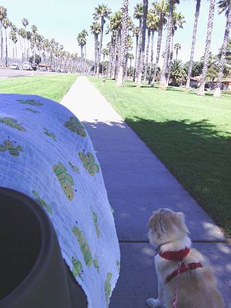 其實,推著嬰兒車,再帶著一隻小狗,走在我們家附近的行人走道,也是有點小吃力.